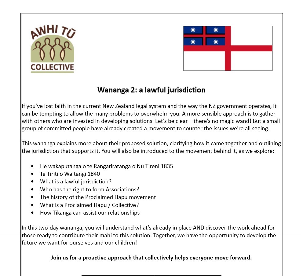 Tikanga is found in every aspect of Te ao maori. Wānanga 2 helps our understanding of He wakaputanga, Te Tiriti and the Tikanga that has been woven into both documents Over two days we will learn how we the people can stand in the jurisdiction of Tikanga.